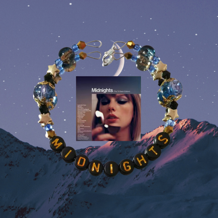 This is a handcrafted bead bracelet inspired by the "Midnights" album.